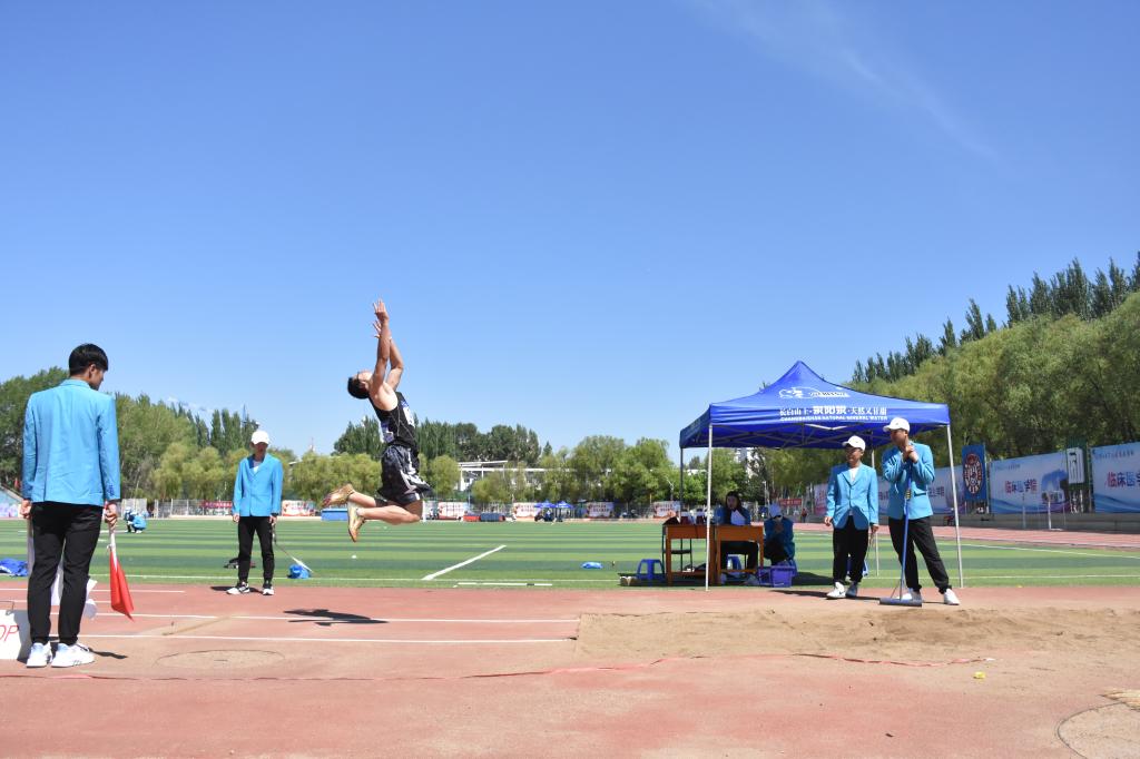 参赛学生外第一名的成绩挺进决赛。决赛中,王兆丰同学虽然未能突破自己的最好成绩,但依旧保持领先。最终,他凭借5.89米的优秀成绩斩获了男子学生组跳远冠军。