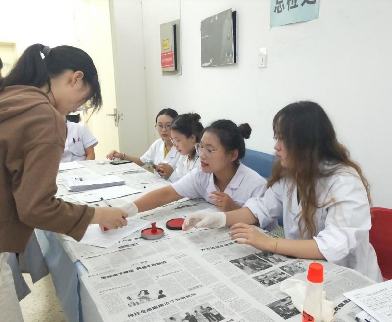 25名志愿者迎着清晨的阳光搭乘公交车于七点半前到达中心校区校医院。新生体检设有身高、体重、胸透、血压、内科、外科等多个体检项目。体检开始前,志愿者被老师分布到不同的体检项目中,随后与老师认真地学习了相关内容和注意事项。