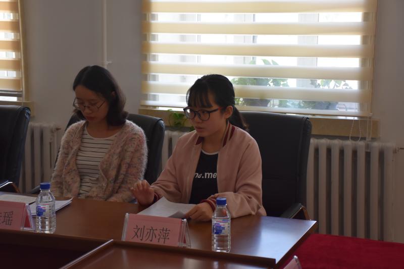 接下来由朴佳瑶和刘亦萍同学发言。朴佳瑶同学有丰富的学生工作经验,曾担任团委书记和学生会部长,她主要向大家讲解学生工作中的注意事项,分享自己的经验相关。朴佳瑶讲到,参与学生工作首先应具有责任心和集体荣誉感,只有满足这两点前提条件,才能更加充分地发挥自己的作用,更加深入的参与其中。在社会实践方面,朴佳瑶建议大家有机会就应该尝试参加,让自己的思想更加成熟,让自己的心境沉淀下来。紧接着是刘亦萍同学发表讲话。刘亦萍同学四年来始终专业成绩位列第一,她主要向大家讲解学习生活方面的相关事项。刘亦萍同学告诫大家要劳逸结合,不要一味地学习,也要注重生活的充实性,尝试多参与科研项目,学以致用,将自己的书本知识更加有效地应用到实践中,让自己能更加有成就感。对于考试,刘亦萍同学告诫大家不要期待着考前临时抱佛脚,而要注意平时对重点知识的掌握。两位同学的经验分享让大家有了深刻的反思,对学习生活和学生工作的平衡有了更明确的标尺。
