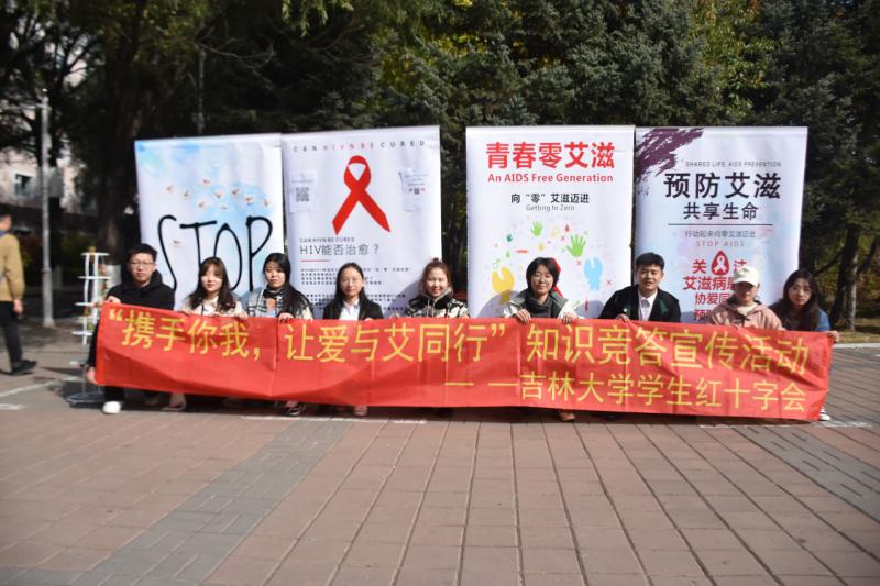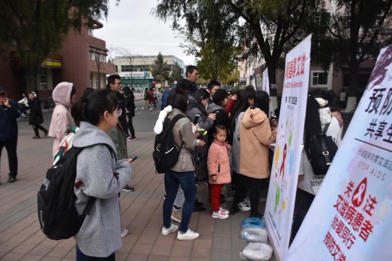 学生红十字会于前卫南区体育馆北广场举办“携手你我,让爱与艾同行”知识竞答宣传活动。