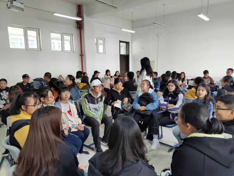 朋辈心理辅导员谢雨欣、团学组织心理部部员,2019级全体新生参加了此次活动。