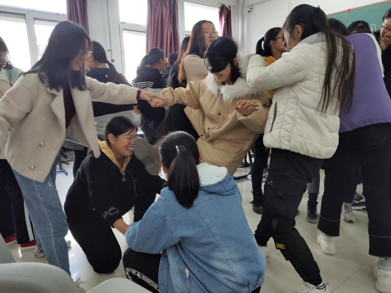 本次活动以“一分钟鼓掌”小游戏作为开场热身,通过此次游戏,同学们纷纷意识到自身潜力的巨大,明确了客观评估自身能力的重要性。紧接着是“我知道”环节,在同学们搞怪、有趣的自我介绍结束后,气氛瞬间活跃起来,彼此之间的关系也更近了一步。随后的“信任之旅”环节让同学们逐步打开自己羞涩胆怯的内心,彼此之间赢得信任。“集体登陆”、“人椅破冰”环节中,同学们被分成多个小组,相互配合,共同合作,教室内充满了同学们的欢声笑语。一个个简单易行的小游戏不仅增进了同学间的友谊,更使同学们明白了互助的重要性,培养团队合作意识与集体观念,学会沟通交流的技巧,增强了适应新环境的能力,从而能更好地融入大学生活。在最后的“快乐传递”环节中,同学们写下了自己入学以来的烦恼和对其他同学的印象与祝福,并一起将其放进了密码箱。活动接近尾声,大家的笑脸随着一声“茄子”定格在相片中。