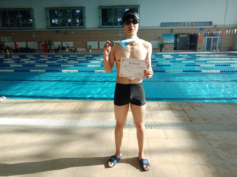 比赛于上午8时正式拉开帷幕。本次游泳比赛项目十分丰富,涵盖自由泳、蛙泳、男女混合接力等十几个项目,吸引了来自全校各个院系的游泳健将们报名参赛。男子50米仰泳于上午8点30分准时开赛,比赛哨声刚响起,位于二号赛道的蒋瀚鸿同学便如离弦之箭一般,迅速与其余参赛人员拉开距离,凭借高超的仰泳技巧斩获了银牌。随后在下午的比赛中,王淇同学厚积薄发,通过自己的努力,在两场个人赛中取得了骄人的成绩,斩获了女子组200米自由泳金牌和女子组50米蛙泳铜牌。团体比赛中凭借出色的团队配合,包你发