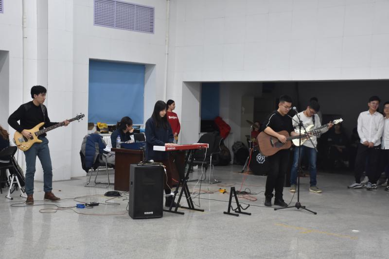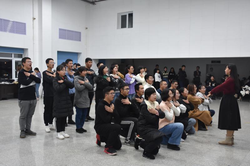 彩排正式开始,风尘翕张、激情澎湃的乐队开场表演点燃了在场观众的热情。紧随其后的是歌舞表演《我们都是追梦人》,同学们脚踏清风,舞动青春,用嘹亮的歌声尽情展现着对梦想的追寻与执着。一曲终了,伴随着节奏紧促的鼓点声,参加武术表演的同学快步登场,拳风阵阵,虎虎生威,昂扬的姿态诠释了何为“男儿当自强”的气魄。本次迎新晚会准备的节目种类繁多:独唱、合唱、朗诵、小品、武术表演,还有少数民族同学精心准备的民族舞蹈、研究生同学的歌曲串烧等等。精彩无比,异彩纷呈。