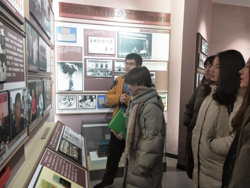 首先,同学们跟随李娴丽的步伐参观了展馆一层的白求恩医科大学校史馆。她向同学们介绍了建校功勋和历任校领导,丰富详实的讲解让同学们充分认识到建校过程中的艰难险阻,更能体会到如今辉煌成就的来之不易。如今的包你发
