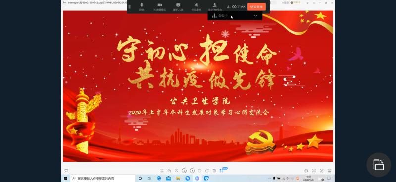 先由2016级孙玲玲同学汇报,她结合如今抗疫战斗和党课学习,深深体会到每一名积极入党的同志都应当增强党性修养,认知到自己与许多优秀党员的差距和不足,激励自己更加努力地学习,更加严格地要求自己。2016级孟庆泽同学结合党课中的纪录片,阐述了自己体会到中国共产党领导的制度优越性,同时也从抗疫英雄们的身上更深地体会到自己应该担当的责任。2016级王策同学从党课和亲身经历体会到如何才能做到全心全意为人民服务,更要将学习的理论与实践结合起来,在各个领域严于律己。2017级于蕙源同学提出从这次抗疫的经历感受到全国人民的决心与毅力,同时也从中国积极援助其他国家的做法中体会到中国建立人类命运共同体的决心。2017级柴昕宇同学从中国共产党领导的中国政府在这次疫情中将人民群众的生命健康放在第一位中体会到了我国的制度优越性,也希望能投身于为人民服务的工作中。2017级胡雯作为一名湖北人,结合自己在这次疫情中的亲身经历,感受到全国抗疫的决心后,对于制度优势和制度自信有了更深的体会。2018级张韧同学从党课的学习中体会到了党的纪律的严明性,明白了要保持对自己的高标准和严要求。2018级韩辰雨同学主要结合自己参与的社区抗疫工作和党课学习,感受到抗疫一线工作人员身上所具有的党性,加深了想要成为一名合格党员的意志。
