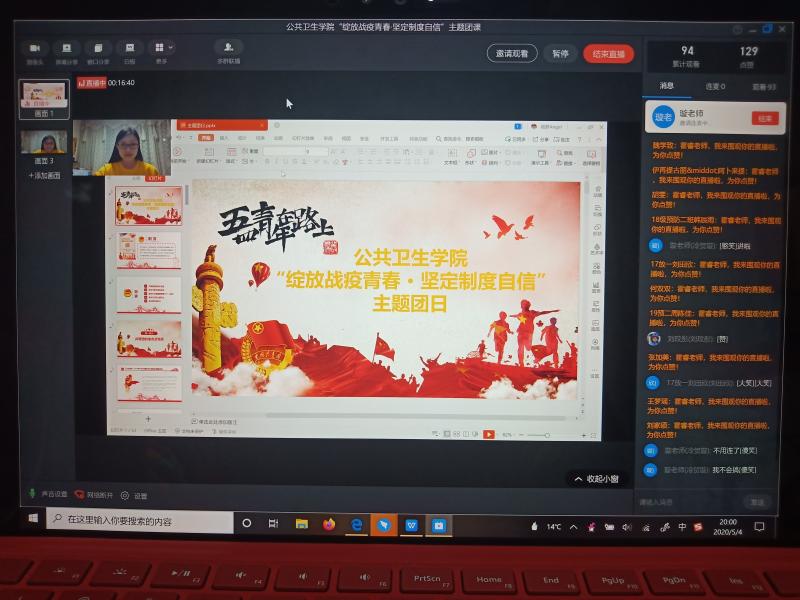 于5月4日晚8时通过“钉钉”平台召开了“绽放战疫青春·坚定制度自信”主题团课教育。包你发