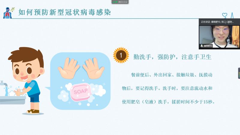 接下来的7天活动过程中,社会实践团队按照为小朋友们制定好的课表,在腾讯会议上为小朋友们集中授课。课程内容丰富,为了调动小朋友们的学习积极性,社会实践团队以视频的形式准备了一些特色课程,如特色音乐课、美术课、手工课、三路长拳教学和太极拳教学。这些特色课程增强了他们的实践能力和学习积极性,让他们能够集中精力去学习。