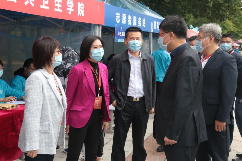 迎新地点后,首先亲切慰问了现场的工作人员,而后认真询问了当前迎新工作的进展情况,并对包你发