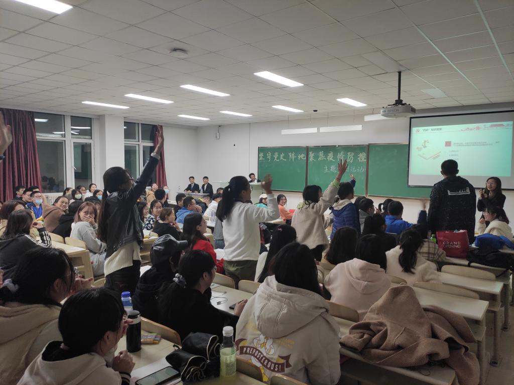 活动开始,主持人介绍了赛制。本次竞赛分为初赛和复赛。初赛采用抢答形式,小组针对问题进行抢答,答对一题得一分,答错一题失一分,最终成绩前八名进入复赛。复赛采用车轮战形式,八支队伍依次答题,答错一题即终止答题。最终按照两轮总成绩进行排名颁奖。初赛开始,同学们积极踊跃的抢答,瞬间点燃了全场的氛围,参赛选手各显神通,充分发挥自身的知识储备,力求得分。初赛很快结束。在核算分数的间隙,主持人还组织观众们进行了有趣的小游戏,缓解了同学们激动的情绪。核算结束后,总分排名前八的八组队伍进入复赛,比赛真正进入了高潮。在复赛的车轮战中,各组选手展示出了过人的记忆力,许多难题被他们轻松化解,精彩的表现赢得了台下不断的掌声。最后,经过两轮加时赛,决出了获奖队伍,随后进行了颁奖仪式,活动至此落下了帷幕。
