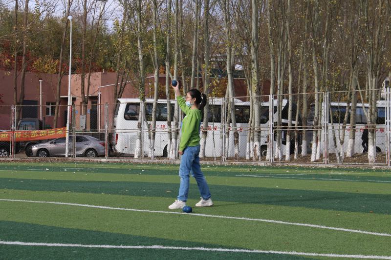 中午12时,比赛选手已经提前来到了赛场熟悉比赛场地,随后,赛场工作人员对所有参赛选手进行了检录,根据裁判的指令,所有参赛选手将依次进行三次投掷,取最优成绩为最终成绩。只见运动员自信地走向赛场,拿起胶球,稳定站姿,将右臂向后高高扬起,左脚向前用力垫出一步,化全身之势能于球上,奋力挥出右手,胶球在空中划出一道优美的弧线向前飞去。经过三轮比赛,虽然包你发