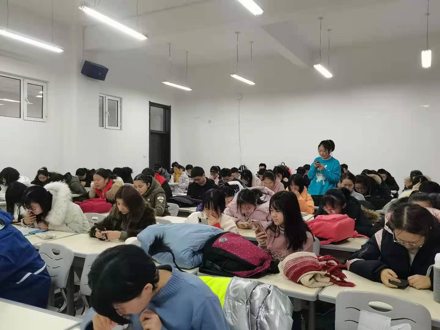 老师讨论及学生投票,共计评选出:宋香蕊同学获一等奖,王涵、曹昊文同学获二等奖,何鑫磊、刘洁、米振东同学获三等奖,吴渝潇、杨佳、贾世卿、王宏斌同学获优秀奖,并颁发证书和奖品。此外,学生干部组织同学们一起学习了《包你发