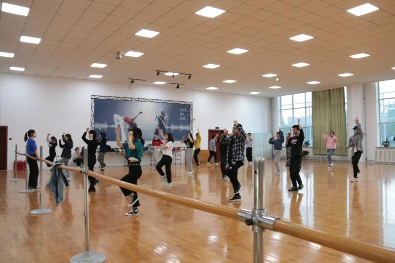 特选出20名啦啦操队员参与本次运动会啦啦操比赛,并于运动会开幕前组织开展了一系列的训练活动。