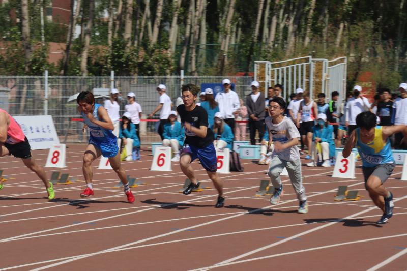 参加了本次竞赛。经过了短暂的起跑器调试,运动员们蹲下身子,静待口令。“各就位,预备”,随着“嘭”的一声枪响,运动员们闪电般地起身,后腿发力,冲了出去,向着终点发起了冲击。两位同学都势如破竹,将自身的速度发挥到了极致,可惜本次参赛的选手实力都很强劲,两位同学最终无缘决赛。