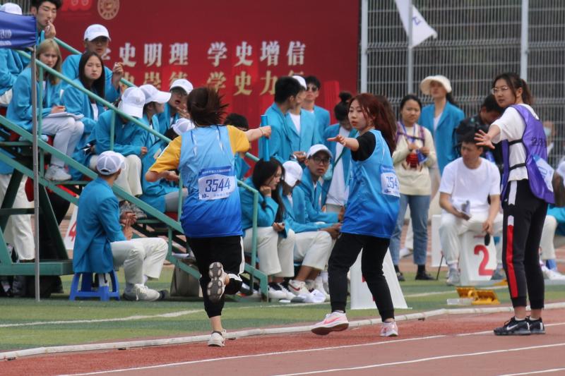 韦海玉、张鹤凡、沈畅、冯一苗四名同学作为运动员参加了女子4×400米接力赛。