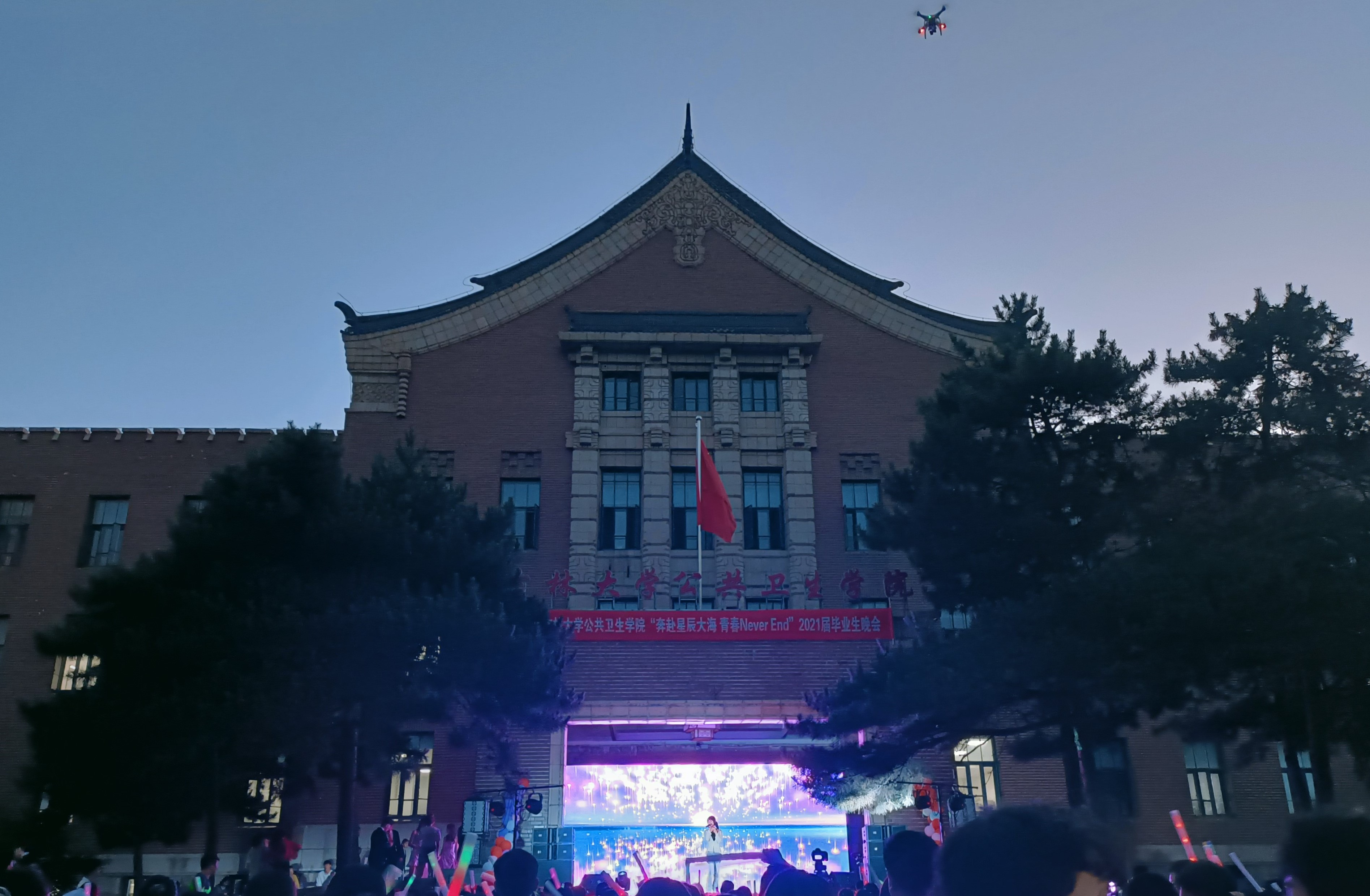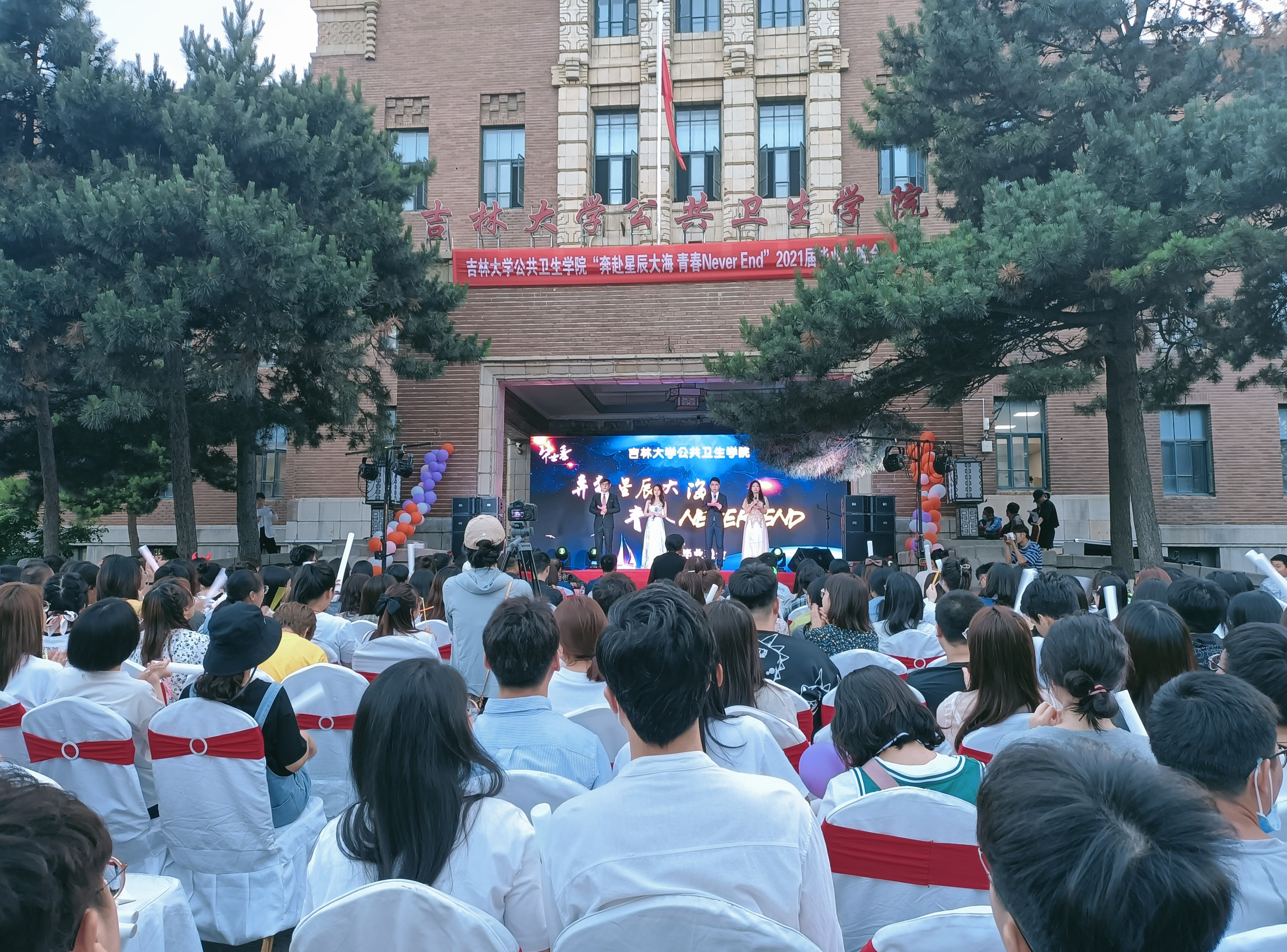 在办公楼前广场举办“奔赴星辰大海,青春Never End”2021届毕业生晚会。包你发