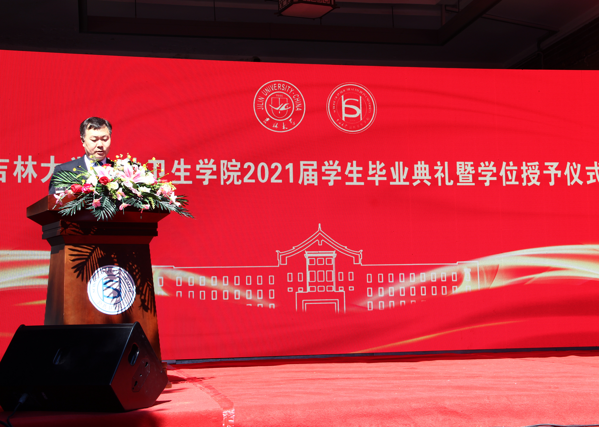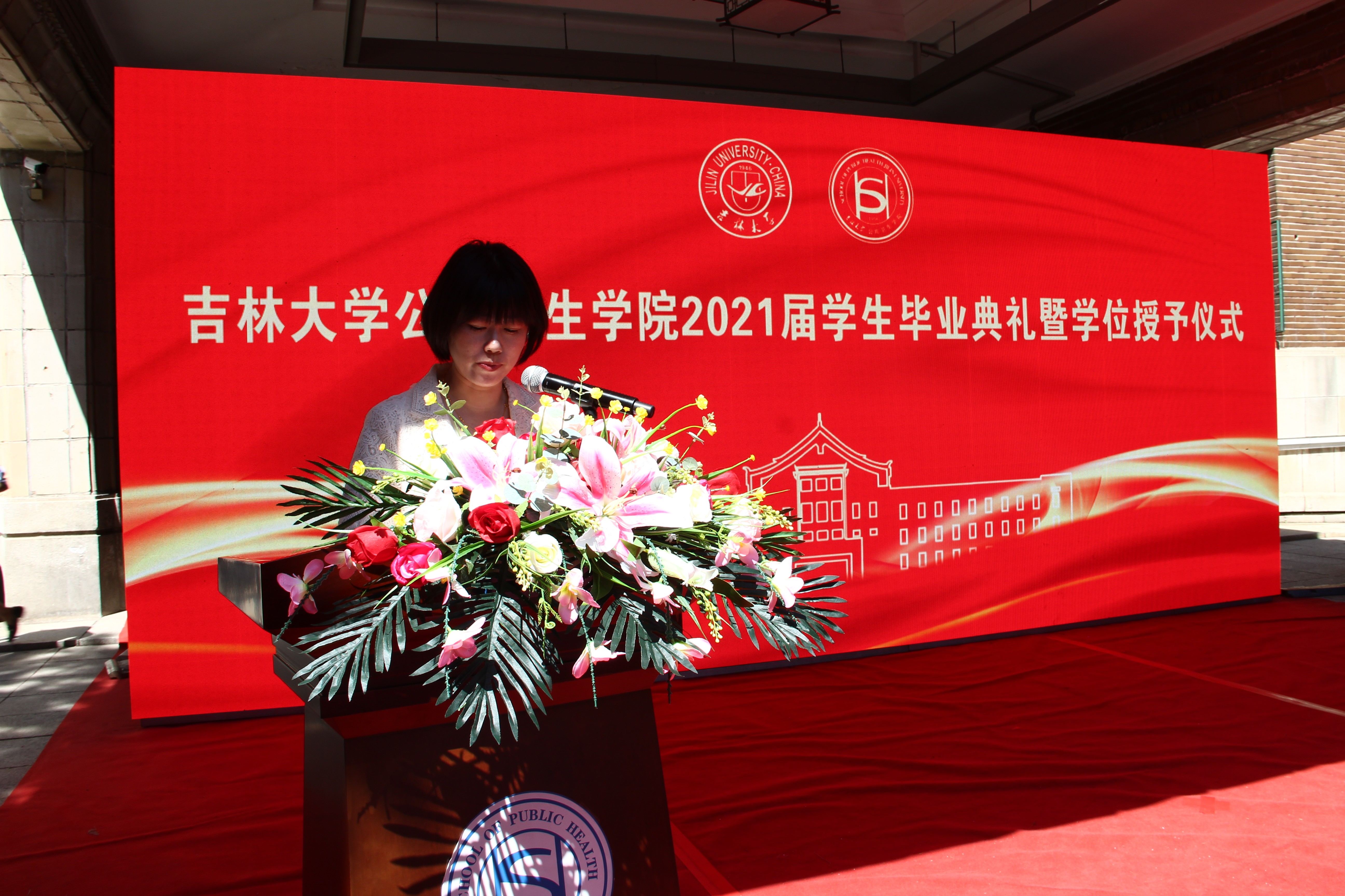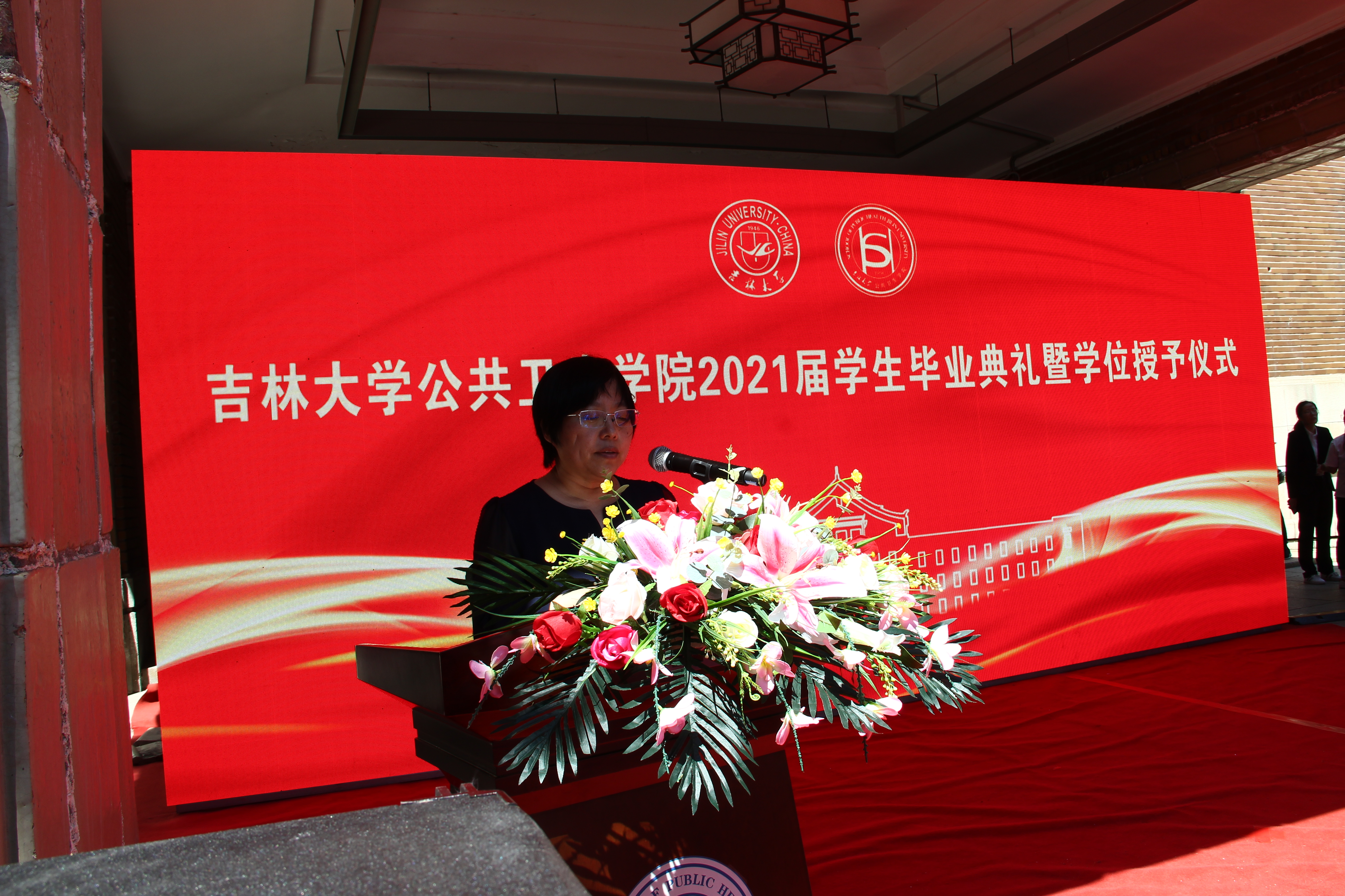向毕业生们致以热烈的祝贺和衷心的祝福。她向全体毕业生提出三点期望:一是要有立己达人、兼济天下的社会责任感;二是要有终身学习、永不懈怠的学术信念感;三是要有敬佑生命、心怀大爱的职业道德感。她勉励全体毕业生无论身在何处,都不要忘记自己的“根”和“魂”,记得母校的重托和公卫人的使命,不负韶华,勤奋工作,接过未来人类战疫的接力棒,为国家未来医疗健康事业奉献青春。