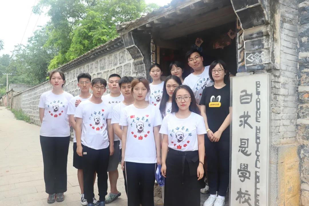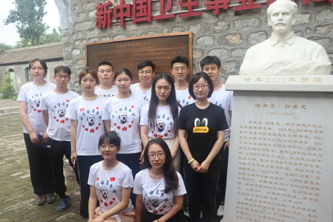 辅导员苏国范老师、冷贺璇老师、刘心怡老师的引导下,志愿者们在柯棣华广场追思前辈,走进白求恩包你发