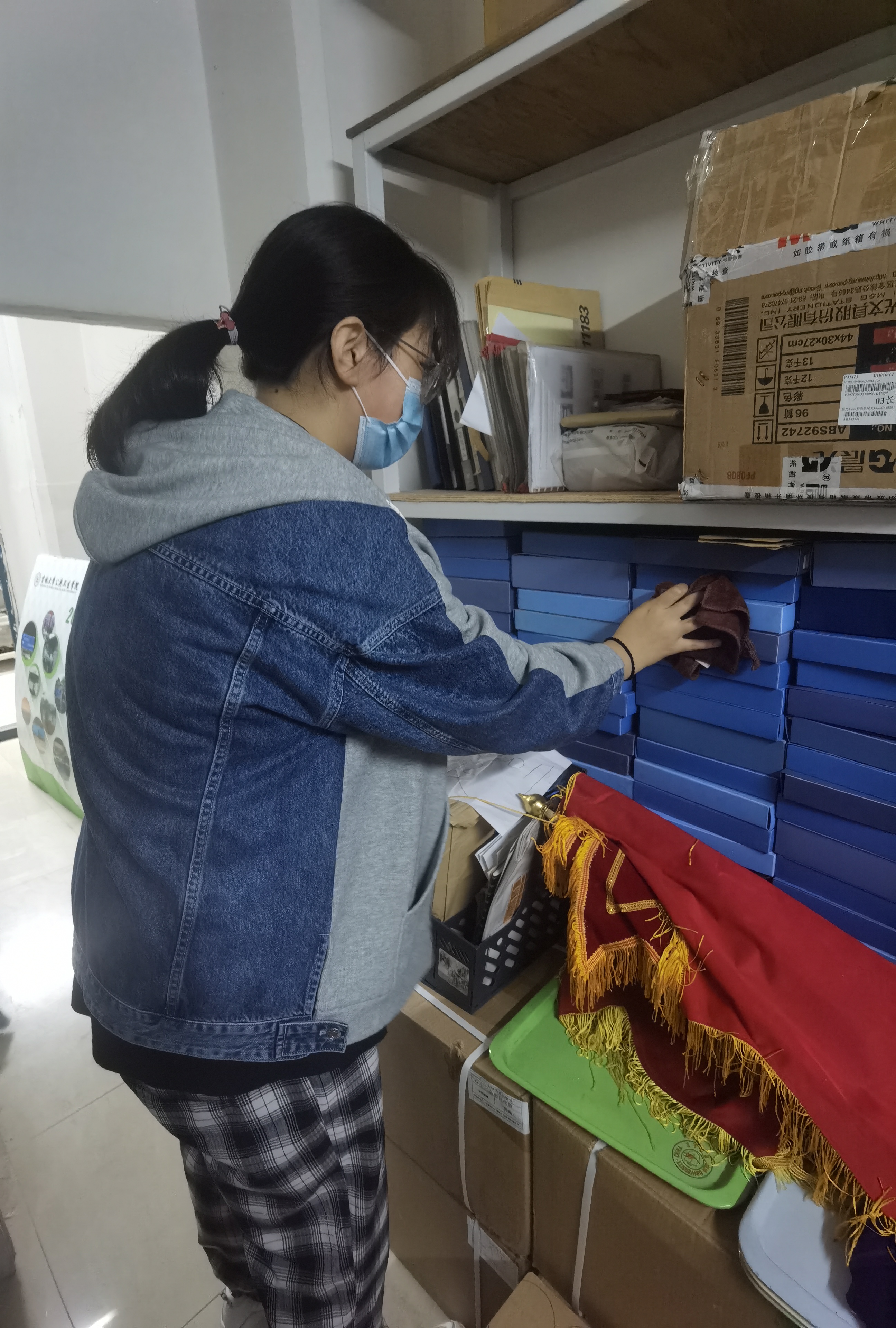 各个办公室的打扫,从扫地、拖地,到擦桌子、窗台、书柜,认真细致的进行了全方位的清扫,且获得了老师们的一致好评。另一部分同学来到储物间,用抹布和拖把将里面堆积的尘土清扫干净。同学们辛勤的劳动使得办公室焕然一新。