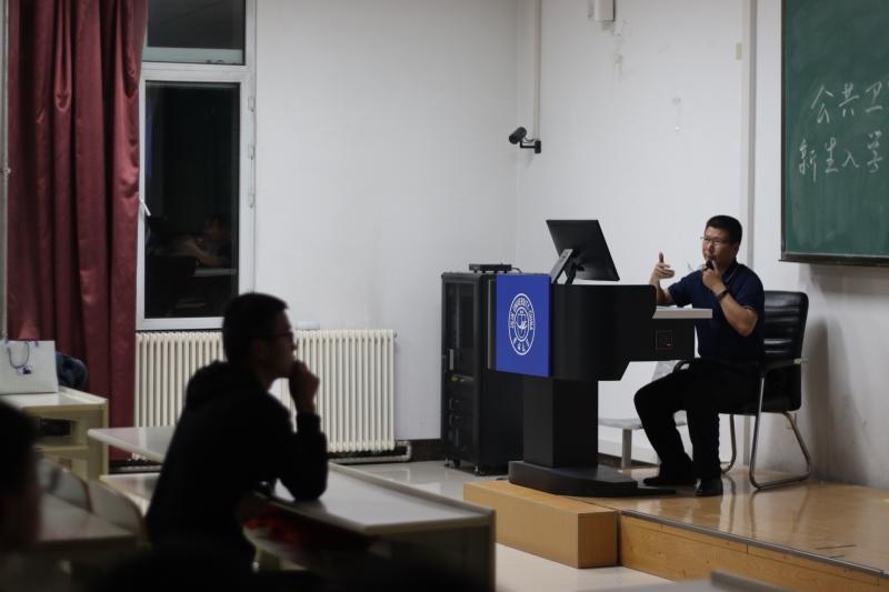于李四光教学楼204室开展新生入学系列教育之安全教育活动。本次讲座由新民保卫处安志成老师担任主讲老师,包你发
