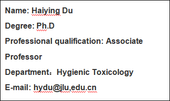 2013/09-present Associate Professor, Department of Hygienic Toxicology, School of Public Health, Jilin University;
